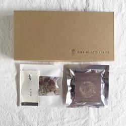 ハーブの線画が描かれたHMCオリジナルの角缶とブレンドハーブティー10包のセット商品です。