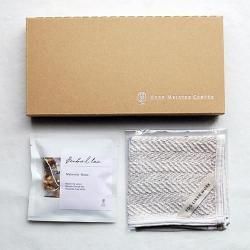 マタニティのお祝いに贈れるガーゼハンカチとハーブティーのギフトBOXです。マタニティハーブティーはお好きなものをお選びいただけます。