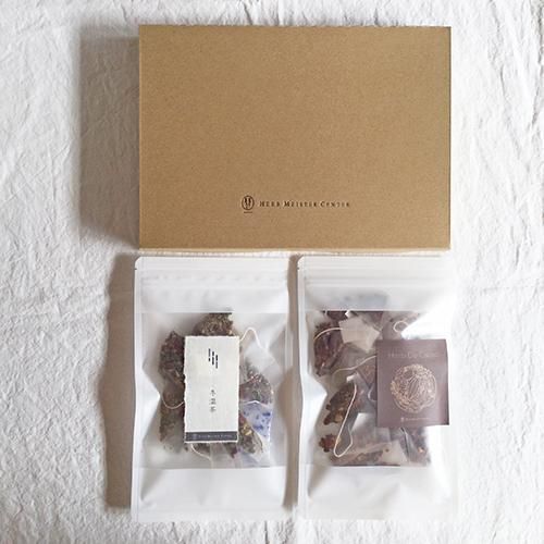 新発売の【Herb De Cacao】と冬のブレンド【冬温茶】をセットにした冬季限定のギフトBOX。