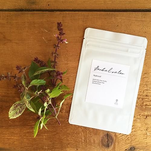 三重県のハーブ農家・MEGUUさんが育てた農薬不使用栽培『ホーリーバジル』を使った、HMCオリジナルハーバルウォーター(芳香蒸留水)です。